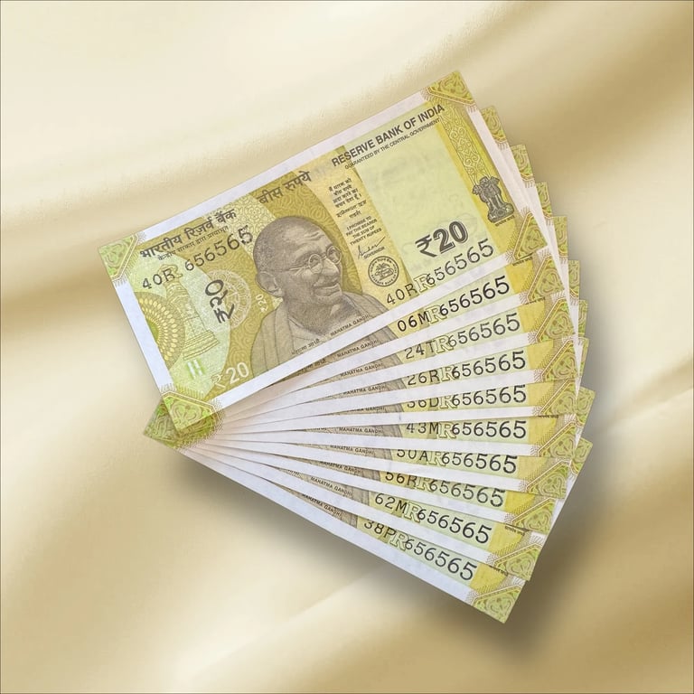 Rs 20/- India Banknote TRIPLING Number *10 Note Set Gem Unc Very Unique and Rare