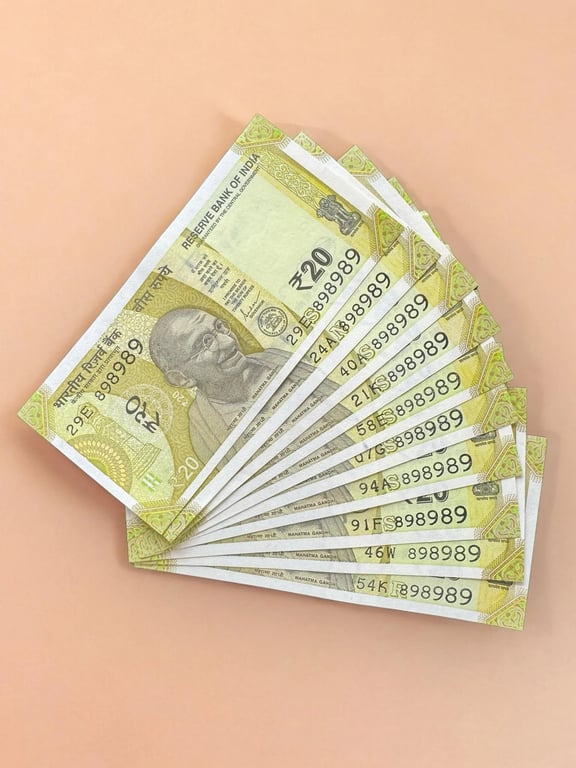 Rs 20/- India Banknote TRIPLING Number *10 Note Set Gem Unc Very Unique and Rare