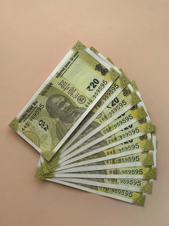 Rs 20/- India Banknote TRIPLING Number *10 Note Set Gem Unc Very Unique and Rare