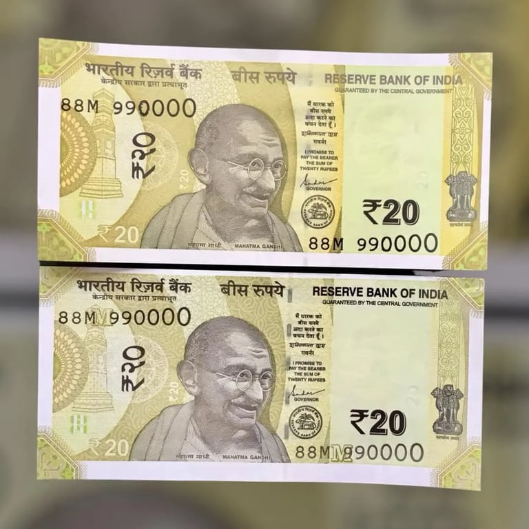 RS 20 INDIA BANKNOTES SEMI FANCY TWIN SETS 88M 990000 UNIQUE AND RARE