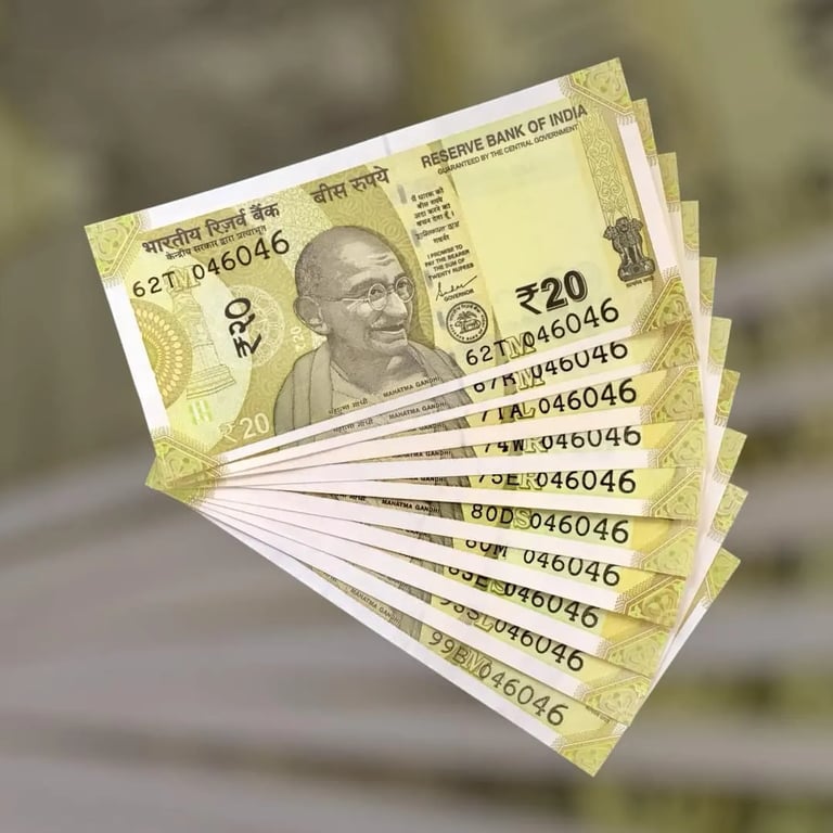RS 20 INDIA BANKNOTES SEMIFANCY 10 NOTES SAME NUMBER SETS 046046 UNIQUE AND RARE