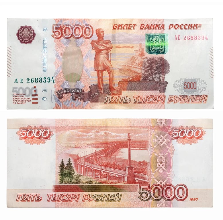 Russia 5000 Rubel Highest Denomination 1997 to 2010 Gem UNC Issue Unique and Rare