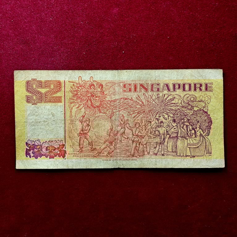 Singapore 2 Dollars orange Tongkang ship 1991 Banknote