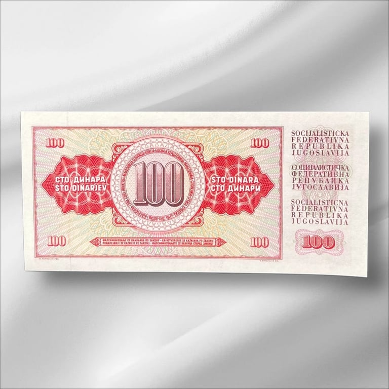 Own a piece of Yugoslavian history with this exquisite Yugoslavia 100 Dinara GemUnC banknote from the collectible series. Issued by Yugoslavia, this rare banknote features a unique ending serial number 786, making it a highly sought-after item for avid banknote collectors. Dating back to a significant era in Yugoslavian economic history, this banknote encapsulates the art of banknote collection, showcasing the beauty and historical significance of paper currency. With a crisp uncirculated condition, this banknote is a gem for any collector looking to add a valuable and unique piece to their collection. Carefully preserved and presented, this banknote comes with a promise of authenticity and a touch of exclusivity that sets it apart from the rest.