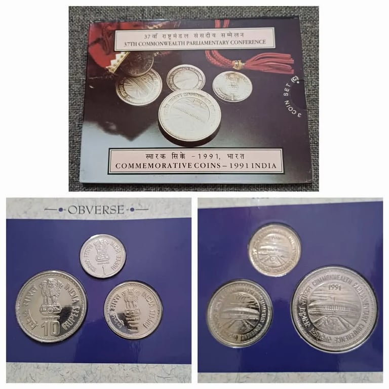 Rare 1991 37th parliamentry conffrence 3 coins unc set issued by mumbai mint