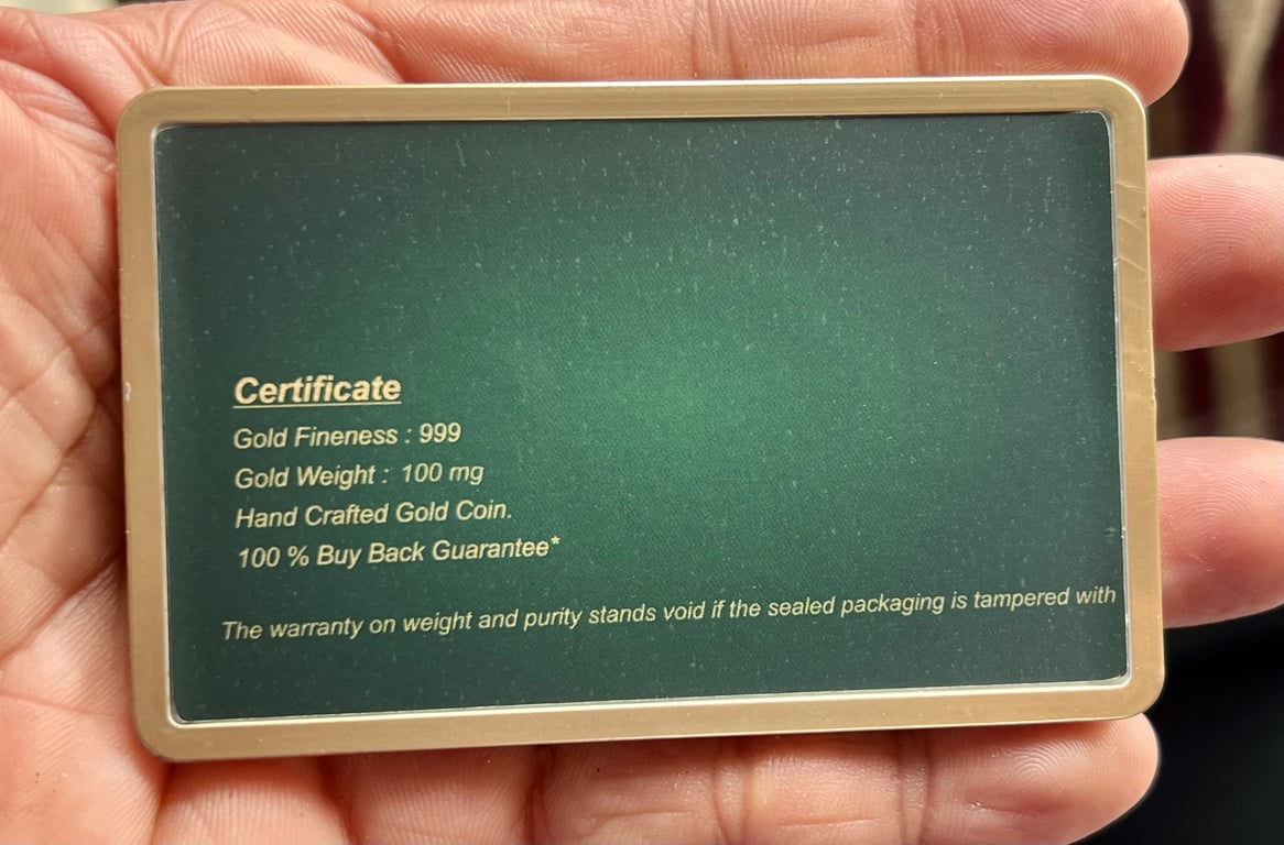 100 MILIGRAM GOLD COIN PURITY 999