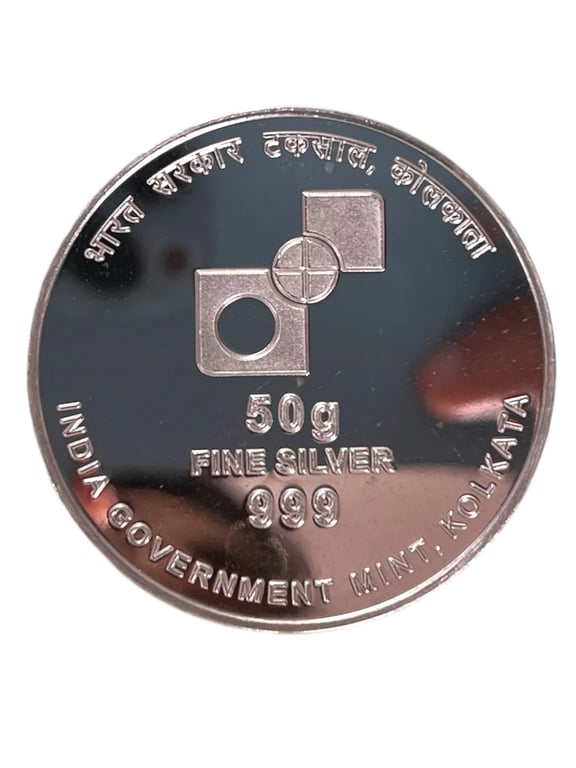 Dhanteras Silver souvenir 50 Grams pure silver capsule packing By India Government Mint Kolkata