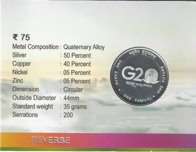 75 Rs Coin :- Weight 35 Gms