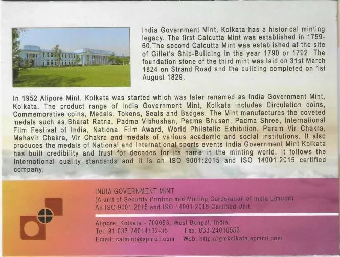 Minted & Issued By India Government Mint, Kolkata