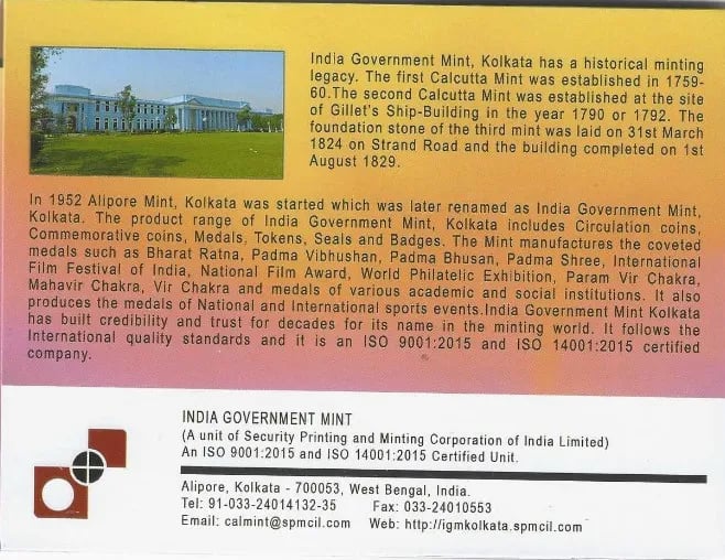 Minted & Issued By India Government Mint, Kolkata