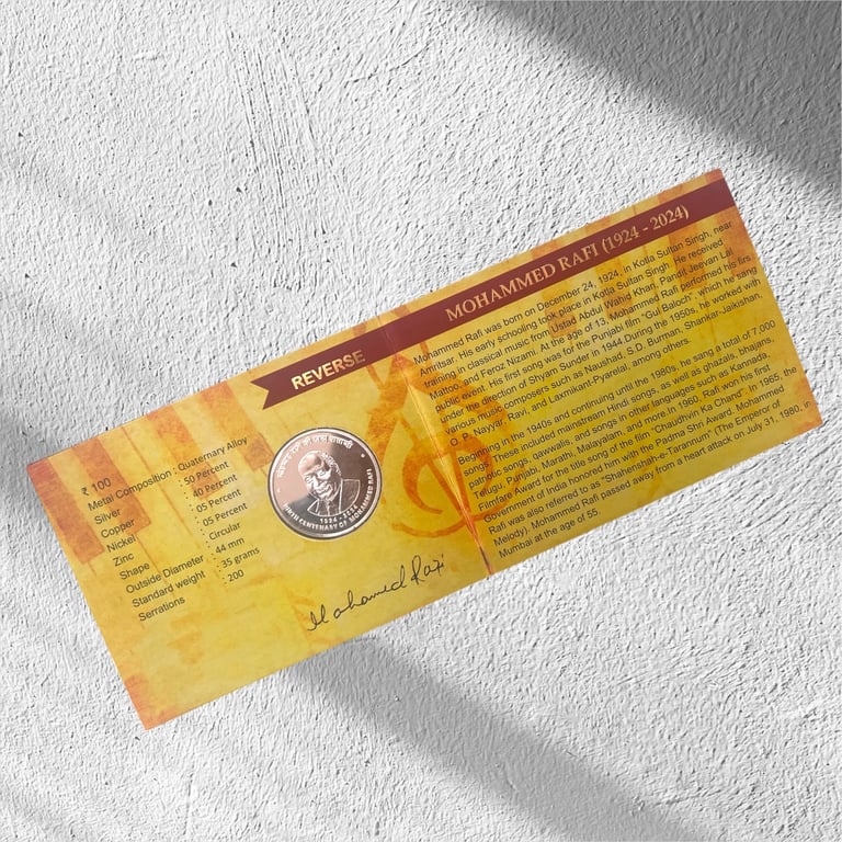 MOHAMMED RAFI UNC COIN SET ISSUED BY INDIA GOVERNMENT MINT