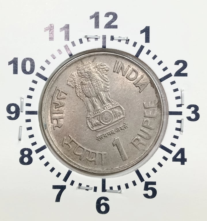 1 RUPEE 1990 15TH YEAR OF ICDS HYDERABAD MINT rotation error