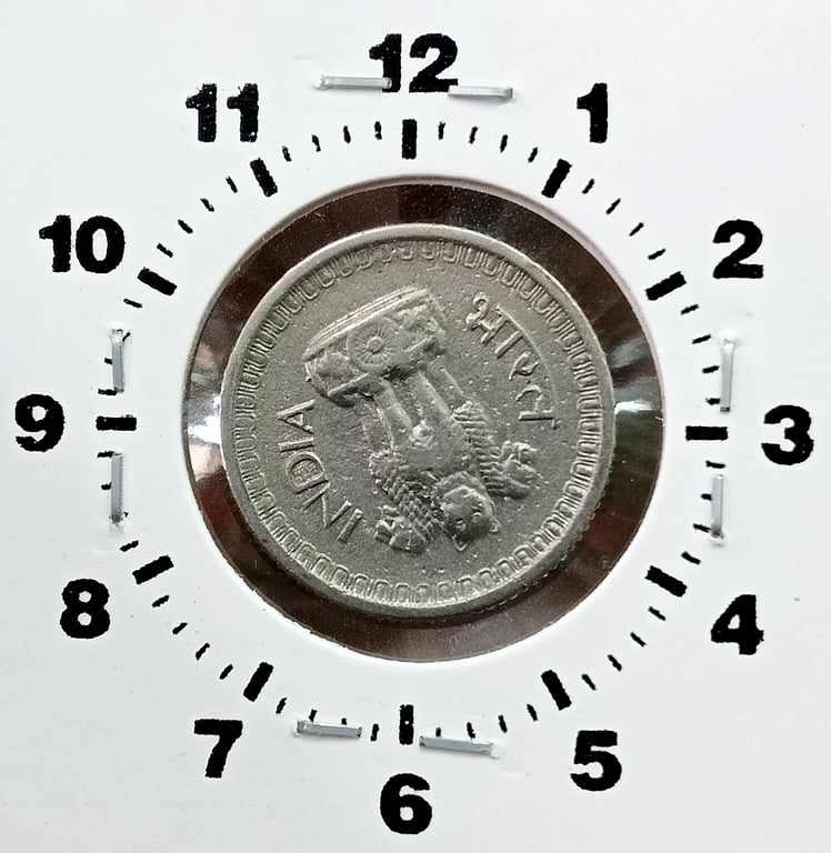 25 PAISE 1965 KOLKATA MINT 5 O CLOCK ROTATION ERROR RARE