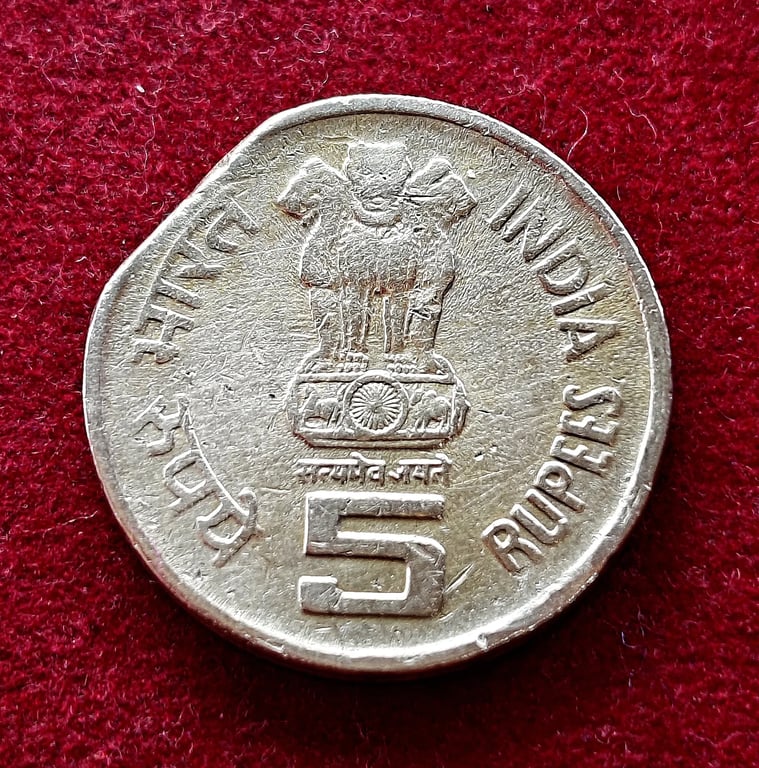 | 5 Rupees 1995 50th Anniversary OF United Nations Straight Clip Error Commemorative Coin | |