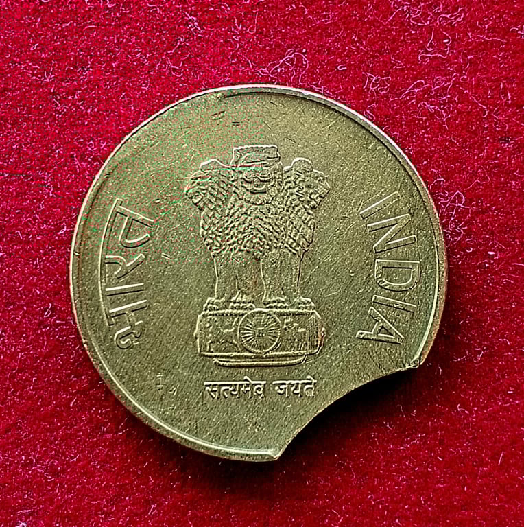 | 5 Rupees 2018 Curved Clip Error Coin (Mumbai Mint) | |