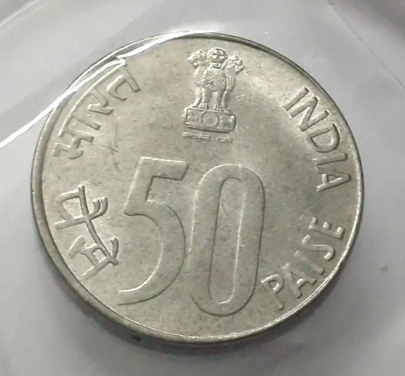 50 Paise 50th Years Of Independence Steel Coin UNC KOLKATA MINT RARE