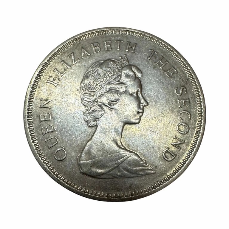 The Hong Kong 1 Dollar coin (1980 issue) is part of Hong Kong's coinage from the period when the region was still a British colony, just before its handover to China in 1997. Below are the details for this specific coin: