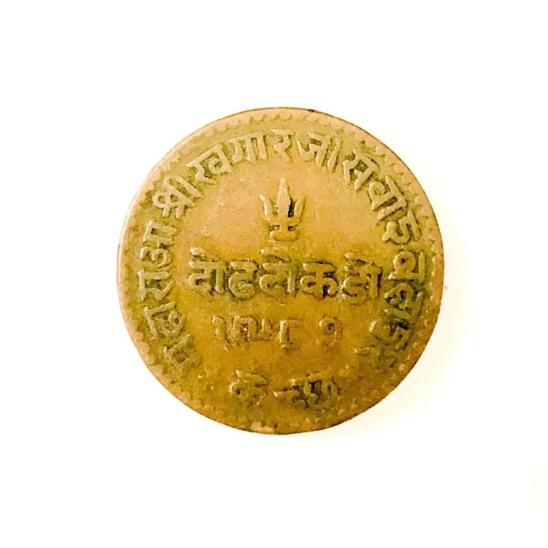 Outer margin, legend in Urdu 'George V, Kaiser Hind, zarb Bhuj'