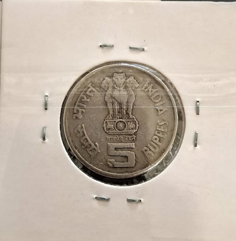 Obverse die of 5₹ Bhagwan Mahavir coin used (without floral border)