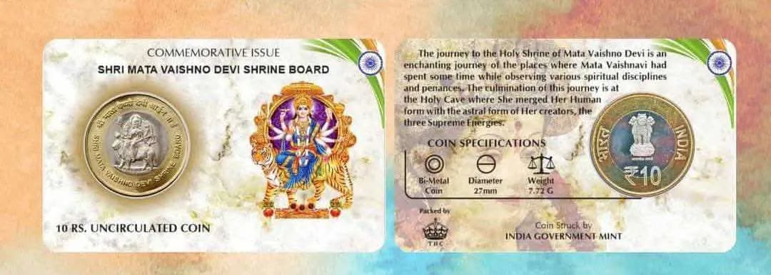 Commemorative issueSilver Jubilee 2012 - Shri Mata Vaishno Devi Shrine Board ObverseLion capitol of Ashoka Pillar, value below Lettering: ReverseCentrally located the picture of Shri Mata Vaishno Devi. Lettering around outside of picture and date. Below the picture 'Silver Jubilee' is written. Lettering: |