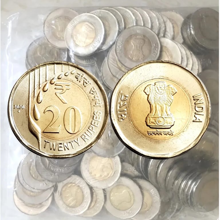 Rs 20 India RBI Seal 100 Coin Pouch Unique and Rare Year 2020 Unique Mumbai Mint