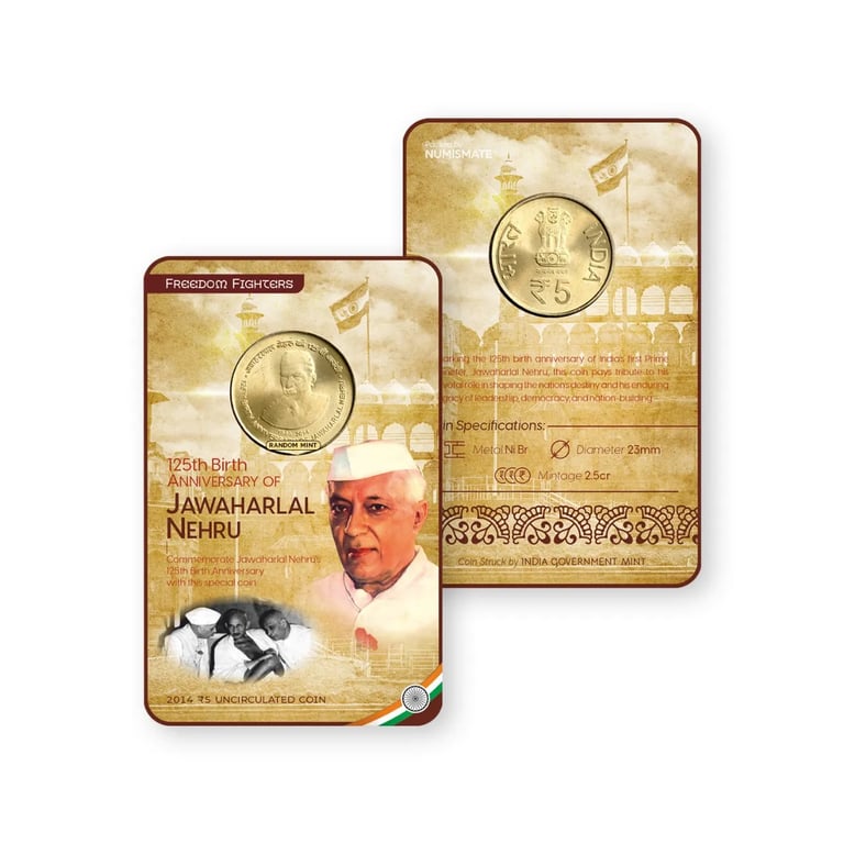 Rs 5 125th BIRTH ANNIVERSARY OF JAWAHARLAL NEHRU Commemorative Coin Card