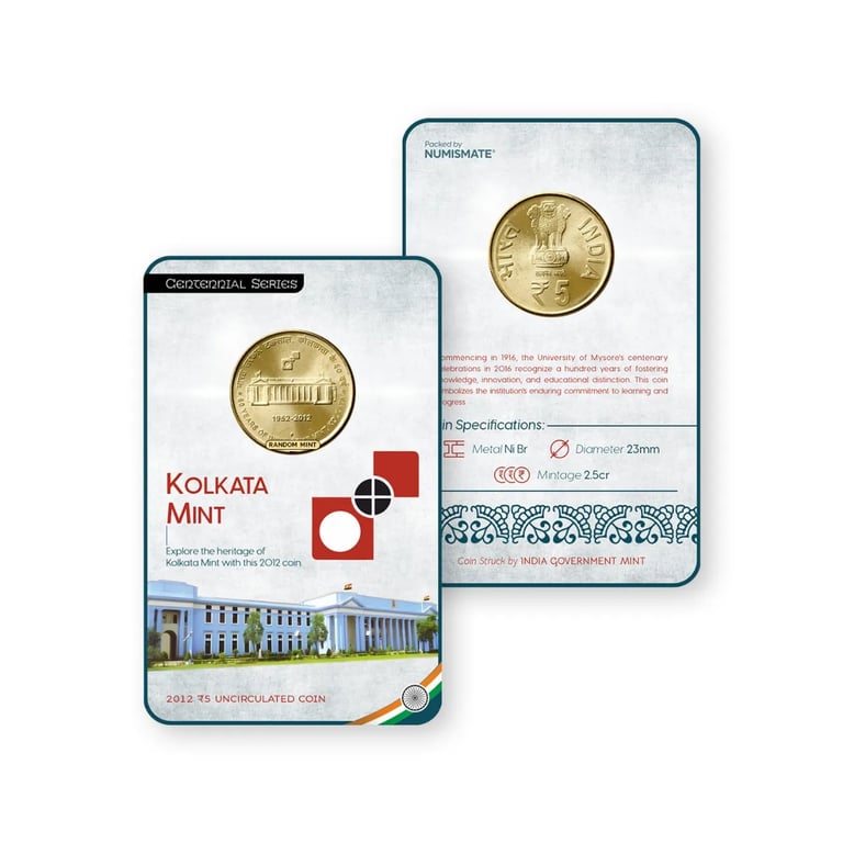 Rs 5 KOLKATA MINT Commemorative Coin Card