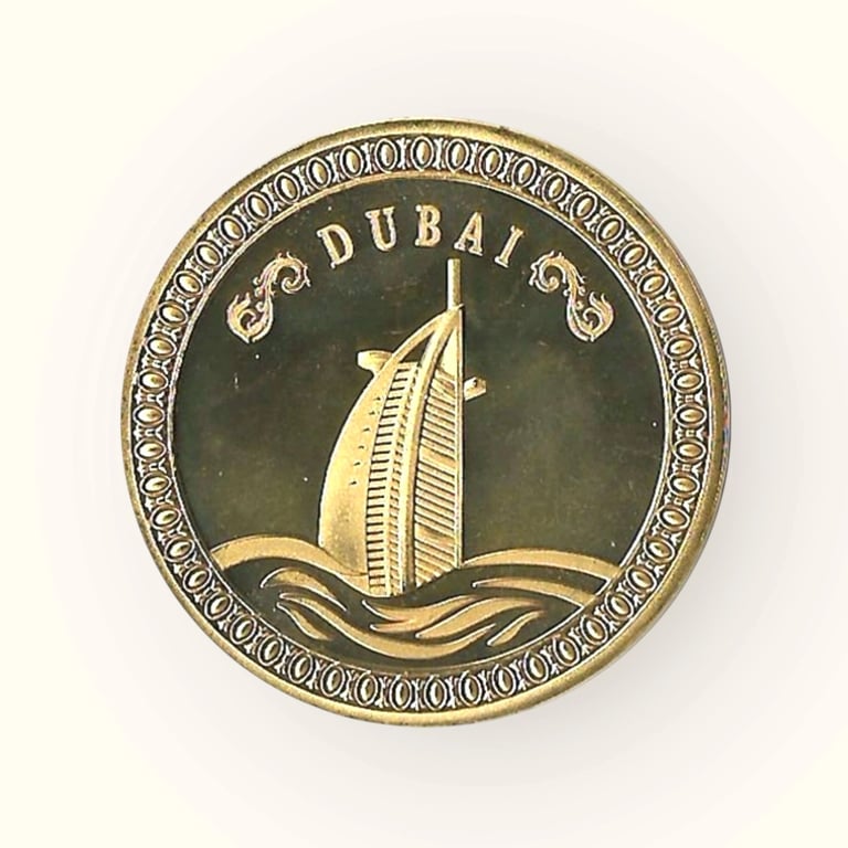 United Arab Emirates Souvenir Medallions Gold Plated Burj Al Arab Unique and Rare