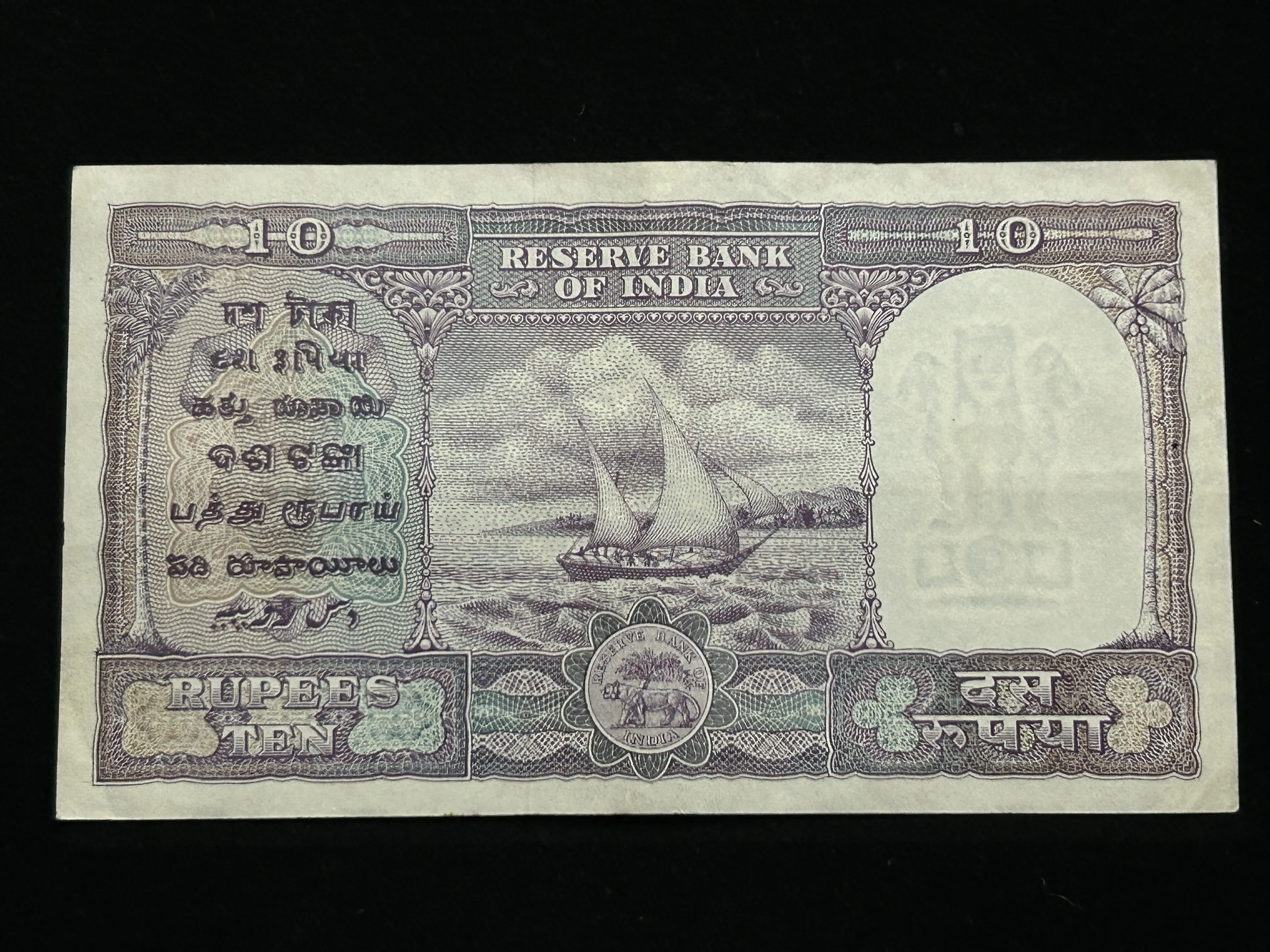 India, 1951 Rupees 10 Banknote, 2nd Issue (Incorrect Hindi), Fafda Issue, Sign. B. Rama Rau, (K53 452768)