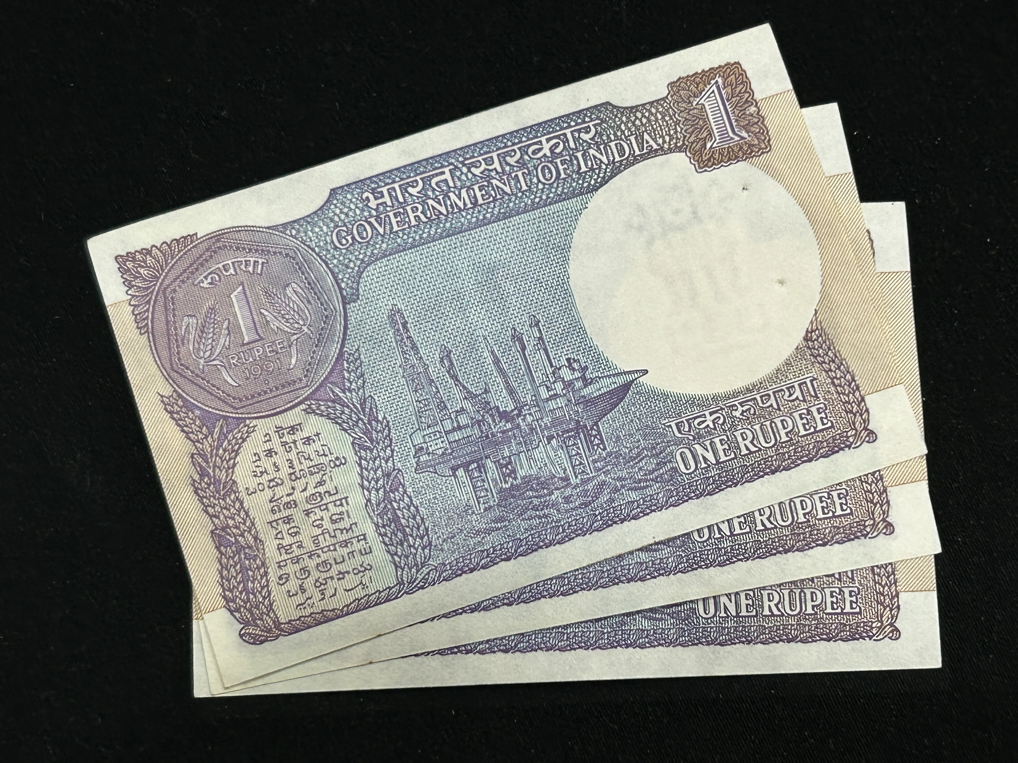 India, 1991 Rupee 1 x 3 Consecutive Serial Number Banknotes, Sign. S.B. Shukla, Inset B, UNC, (18H 370769)