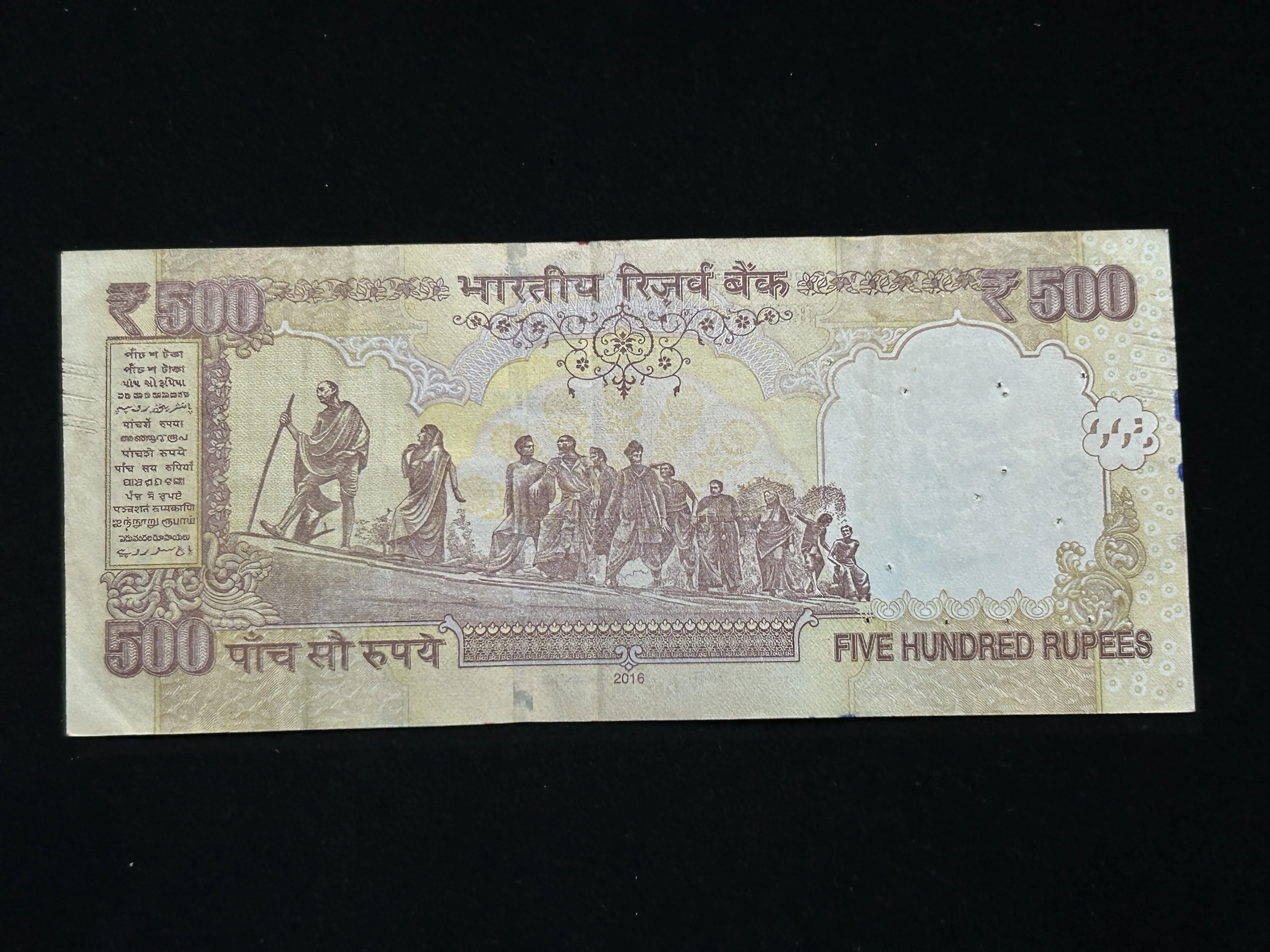 India, 2016 Rupees 500 Banknotes, Solid Fancy Serial Number 444444, Sign. Raghuram G. Rajan, Inset L, (5CT 444444)