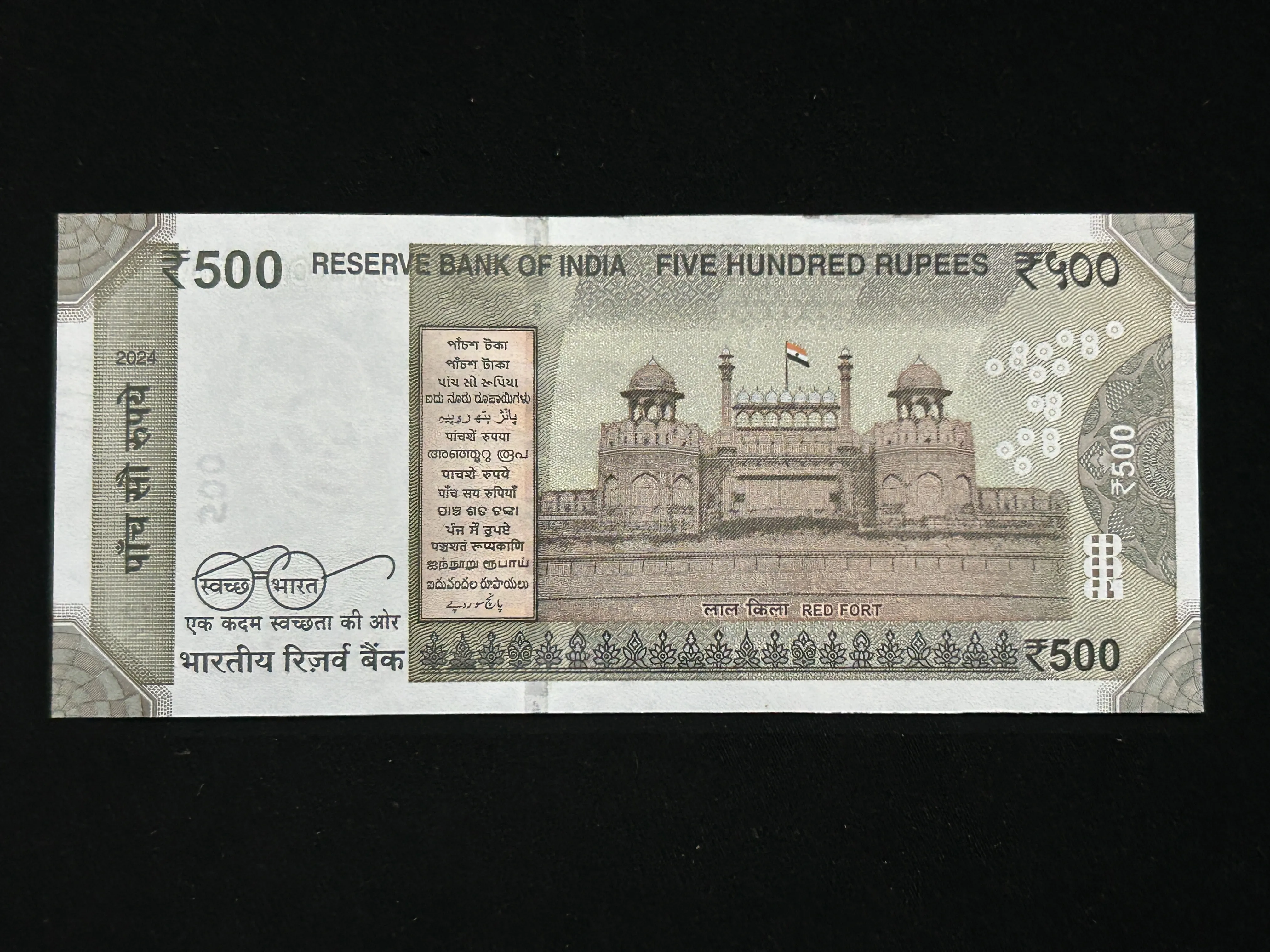 India, 2024 Rupees 500 Banknotes, Fancy Serial Number 900000, Sign. Shaktikanta Das, Inset K, UNC, (3FV 900000)