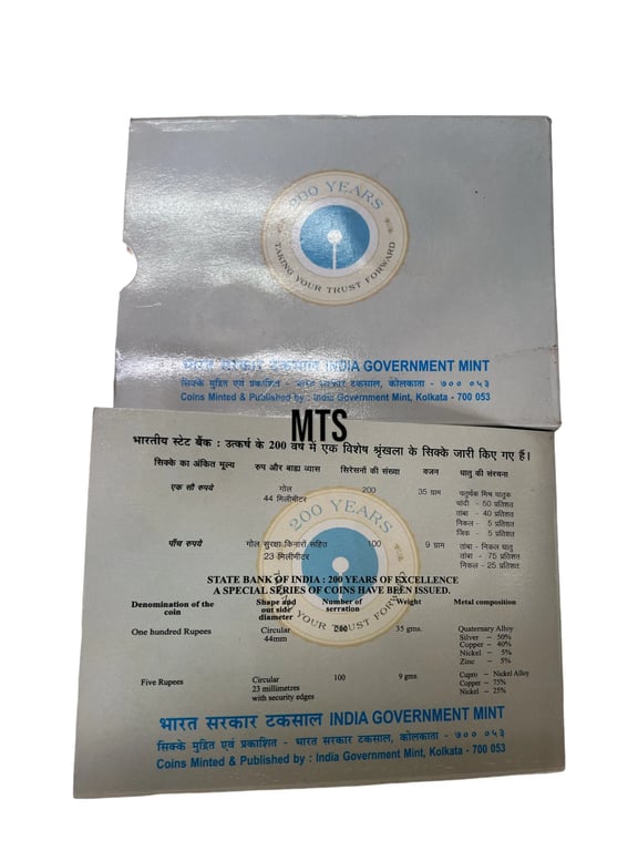 200 Years of State Bank of India Unc coin Set ( 100₹ + 5₹ ) Issued By India Government mint kolkata