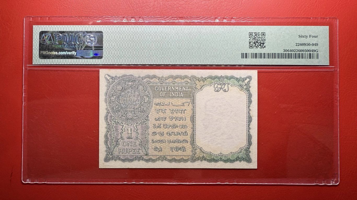British India, 1940 Rupees 1 Banknote, King George VI (KG VI), Sign. C.E. Jones, Inset Plain, UNC