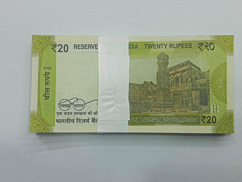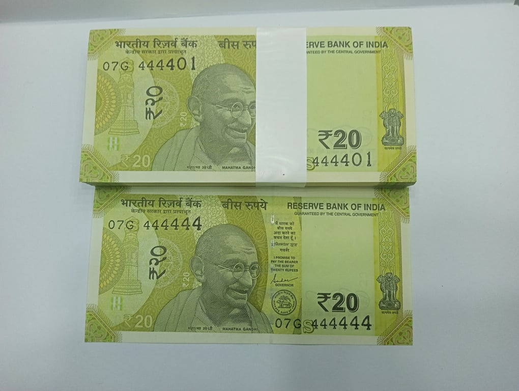 20 RUPEE FANCE NUMBER FULL SERIEL BUNDLE OF 100 NOTES