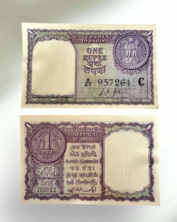 A11 Re1 India Banknote Signature Series Signed by L K Jha Inset C 1957 Issue