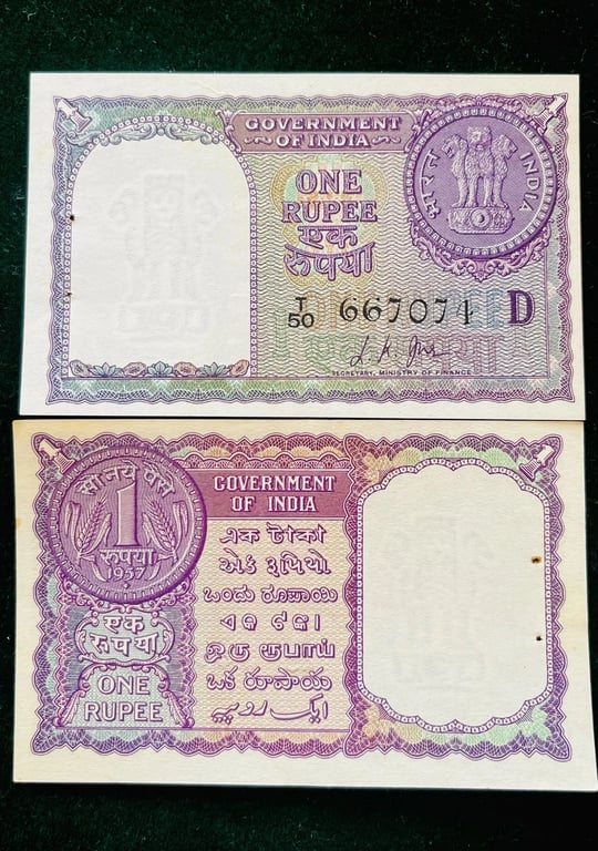 A12 Re 1 India Banknote Signature Series Signed by L K Jha Inset D 1957 Issue