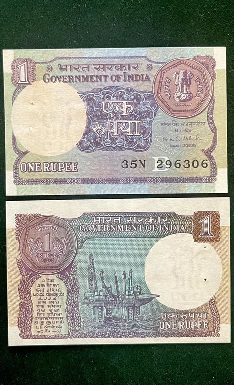 A58 Re 1 India Banknote Signature Series Signed by M S Ahluwalia Inset B 1993 Issue