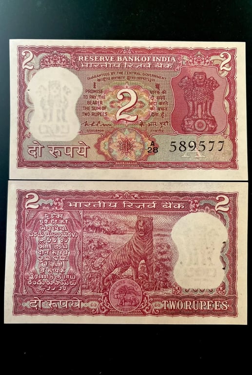 B14 Rs2 India Banknote Signature Series Signed by K R Puri Inset A 1976 Issue