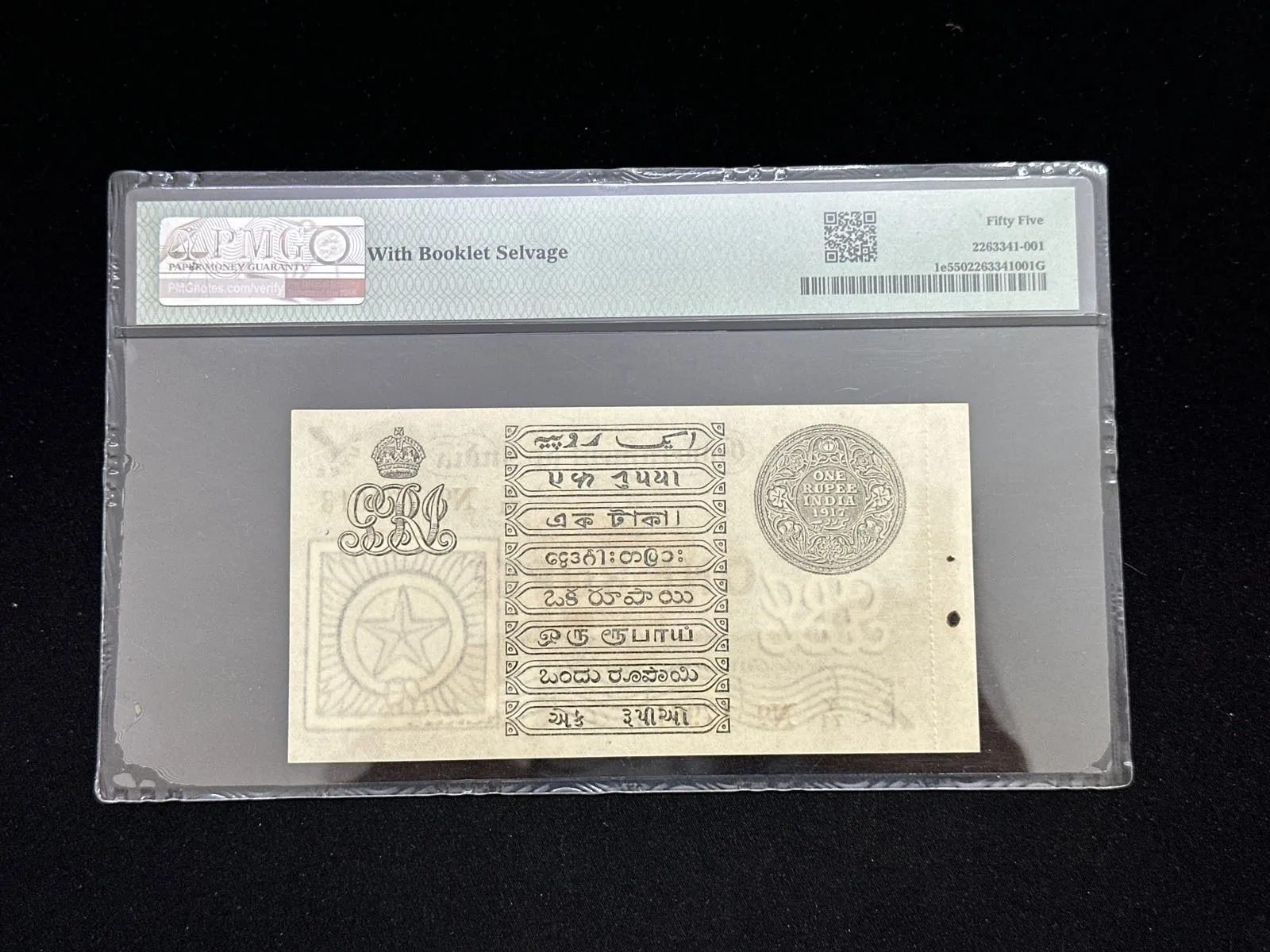 British India, 1917 Rupee 1 Banknote, King George V (KG V), Prefix (Y71), Sign. A.C. McWatters, PMG Graded 55 (AUNC), RARE & SCARE, (Y71 79613)
