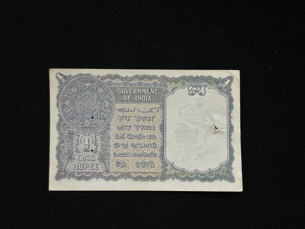 British India, 1940 Rupees 1 Banknote, King George VI (KG VI), Sign. C.E. Jones, Inset Plain, UNC