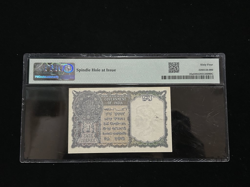 British India, 1940 Rupee 1 Banknote, King George VI, Holy Fancy Serial Number Ending 786, Sign. C.E. Jones, PMG Graded 64