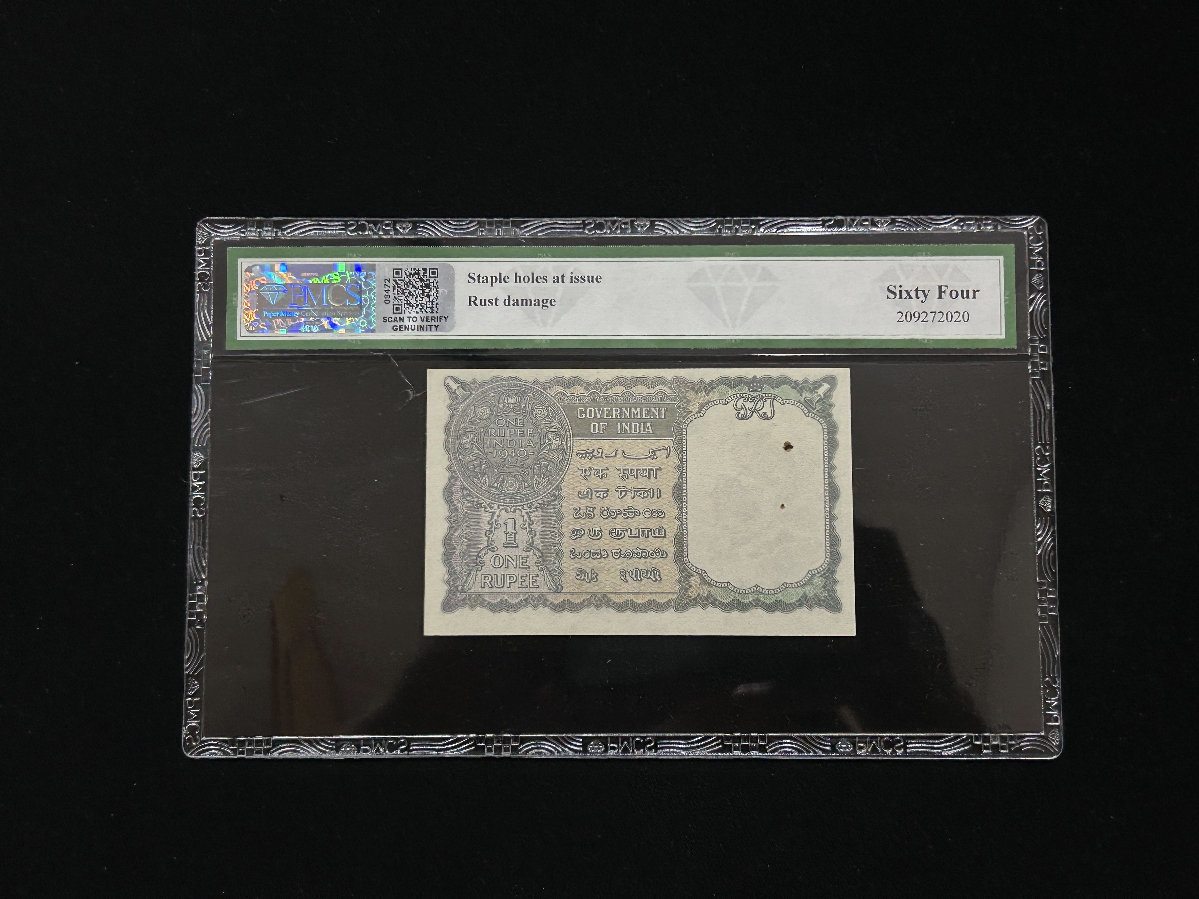 British India, 1940 Rupee 1 Banknote, King George VI (KG VI), Prefix (W24), Sign. C.E. Jones, PMCS Graded 64