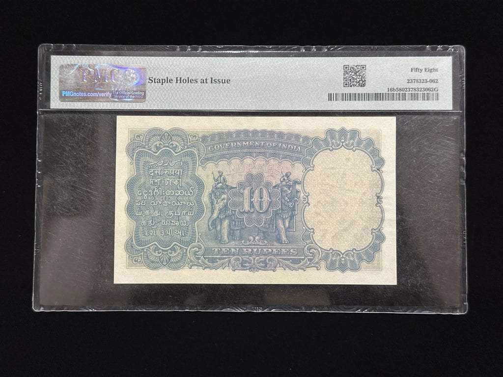 British India, Rupees 10 Banknote, King George V (KG V), Sign. J.W. Kelly, PMG Graded 58 (AUNC)