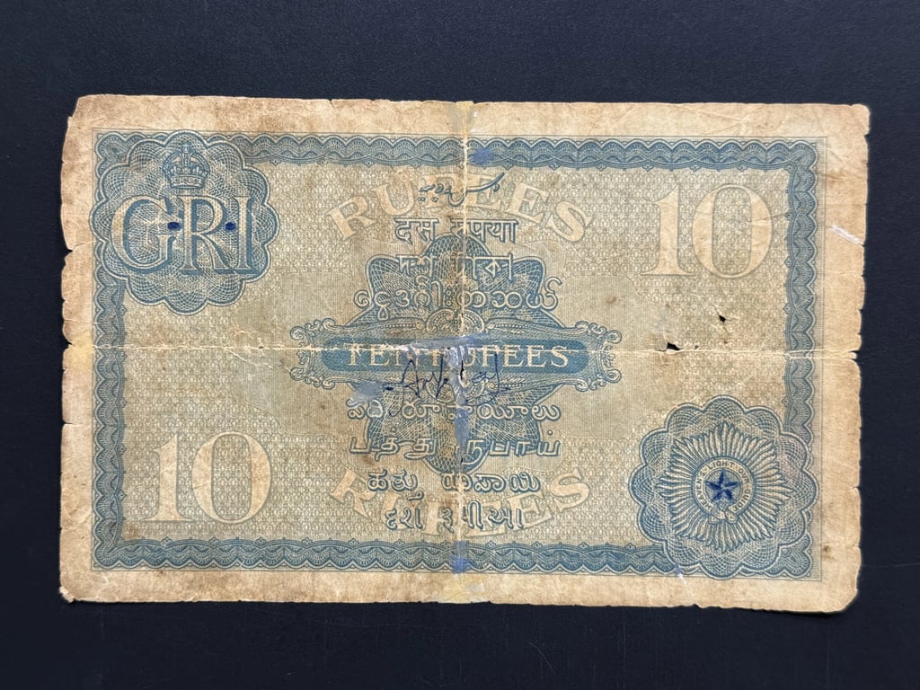 British India, Rupees 10 Banknote, King George V (KGV), Sign. H. Denning