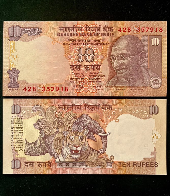 D72 - Rs 10 India Banknote Signature series Signed by Y.V. REDDY Inset S 2007 Issue