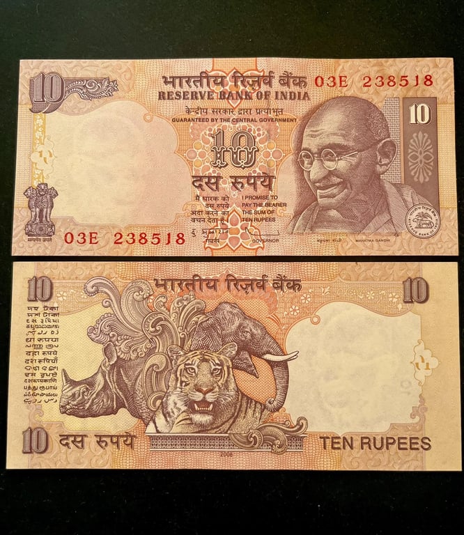 D77 - Rs 10 India Banknote Signature series Signed by D. SUBARAO Inset PLAIN 2008 Issue