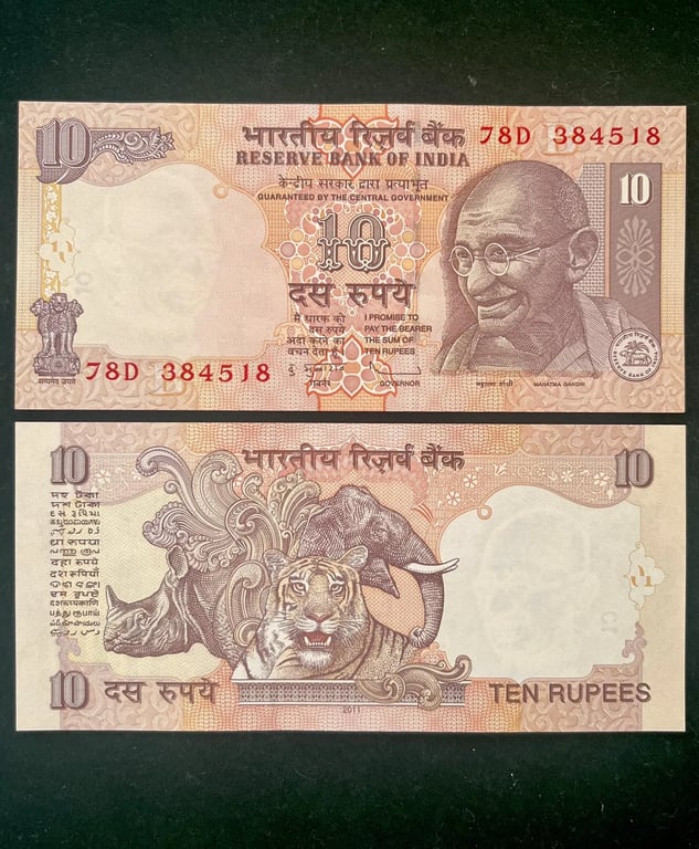D87 - Rs 10 India Banknote Signature series Signed by D. SUBARAO Inset B 2011 Issue