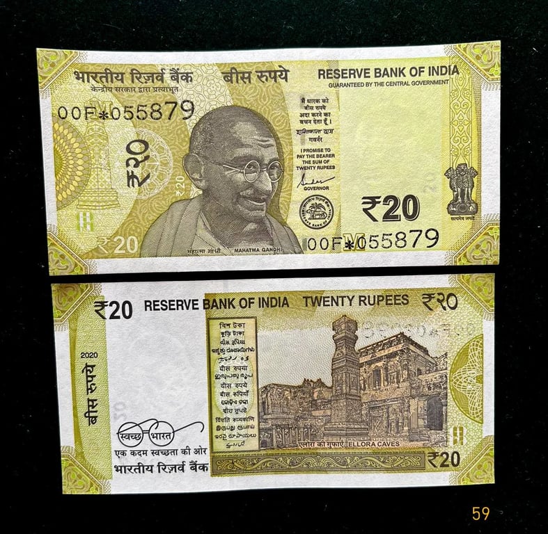 ES 59Rs 20 India Banknote Star Replacement Issue 00F Inset M 2020 Limited Issue