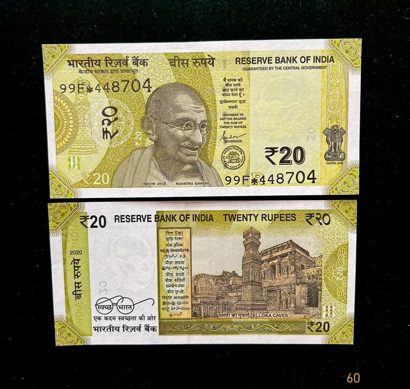 ES 60 Rs 20 India Banknote Star Replacement Issue 99F Inset R 2020 Limited Issue